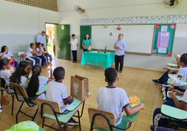 Three priests visited D. Neném School, last Monday, to spread the word on the advent. The group was composed of Father Cesar, chaplain of Pernambuco’s police department, and two Benedictine monks, Dom Marcos and Dom Policarpo. Merry Christmas!