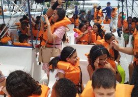 Last Wednesday, 90 children who graduated from Elementary School 1 (age 10-12) in the schools of Usina Trapiche, with the support of 10 teachers, came to Recife in a celebratory trip. With the support of Catamaran Tours, they could glide through the calm waters of the Capibaribe river, crossing the three islands of Recife´s Old Town (Santo Antônio, Recife Antigo, and Boa Vista), going under its historical bridges and contemplating the beautiful scenery of Marco Zero Square, Ginásio Pernambucano, Assembleia Legislativa, Santa Isabel Theatre, and the houses from Rua da Aurora.