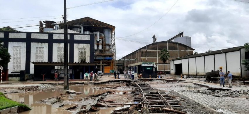 No dia 02 de julho, fomos surpreendidos pelo transbordamento do Rio Canhoto que nos trouxe perdas e destruição. A água e a lama atingiram a altura de um metro e meio dentro da fábrica. Ficamos sem energia, sem água, sem acesso e sem comunicação. Mas a tristeza não nos paralisou. Com muita garra, toda equipe trabalhou duro, inclusive com a ajuda de companheiros da Usina Trapiche, e, com a graça de Deus, a Usina Serra Grande pôde soar seu apito forte e vibrante que tanto nos emociona!